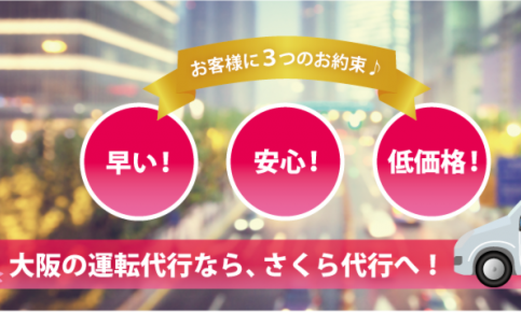 お酒の後の運転代行はさくら代行へ。大阪・北新地・難波・心斎橋を中心に営業中!